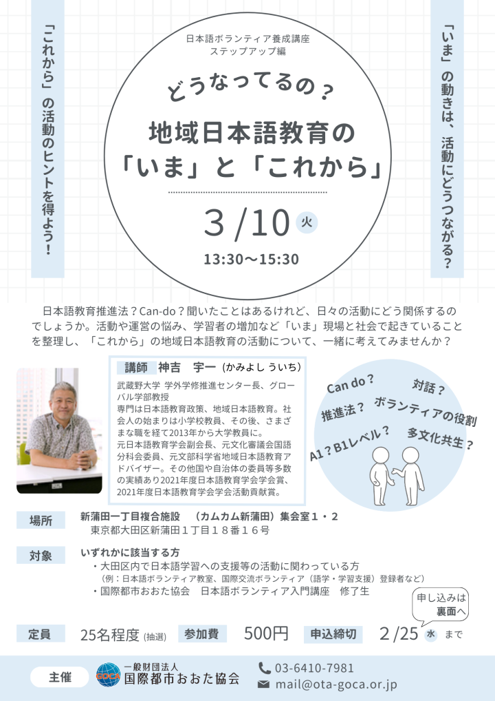 日本語ボランティア養成講座ステップアップ編 「どうなってるの? 地域日本語教育の「いま」と「これから」