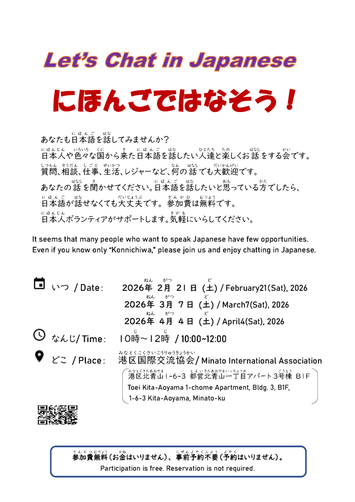 東京で生活する外国人のみなさんの生活の役に立つ情報を紹介します。やさしい日本語で書きます。
