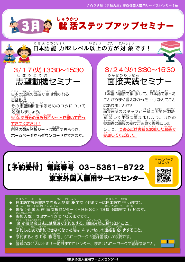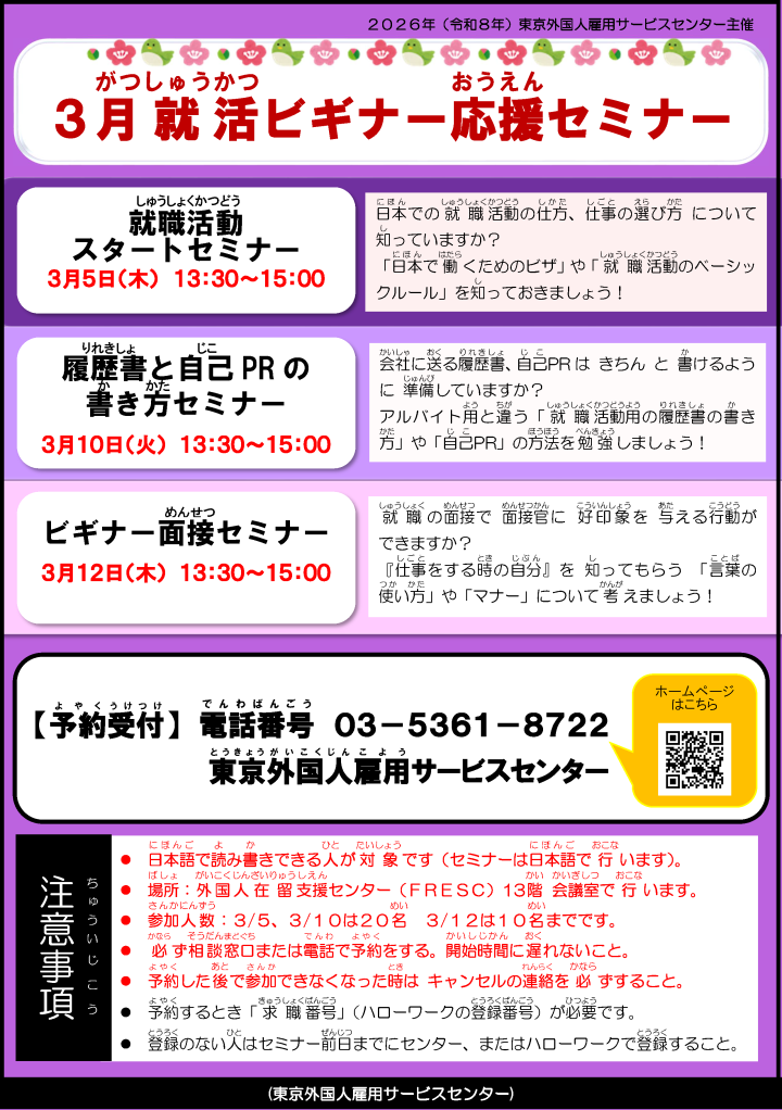 3月就活ビギナー応援セミナー(東京外国人雇用サービスセンター)