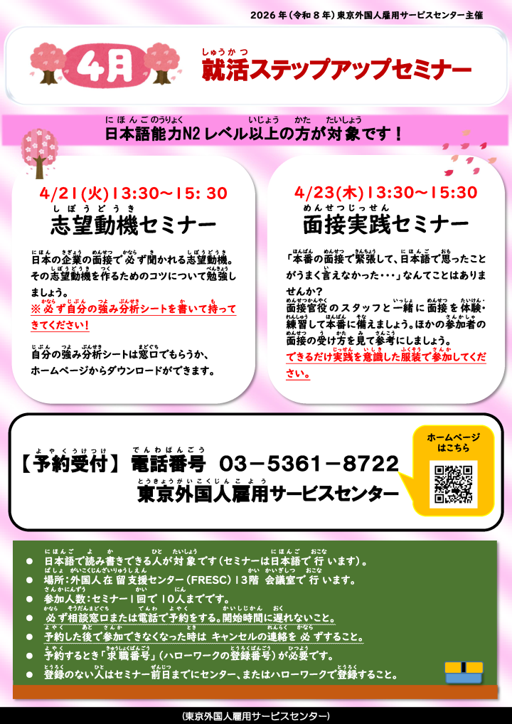 4月就活ステップアップセミナー(東京外国人雇用サービスセンター)