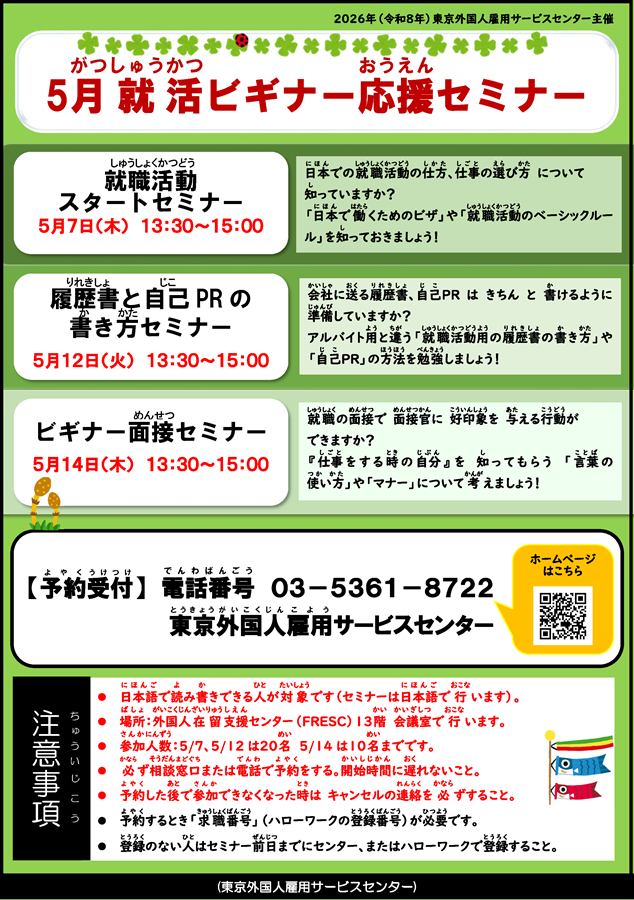 5月就活ビギナー応援セミナー(東京外国人雇用サービスセンター)