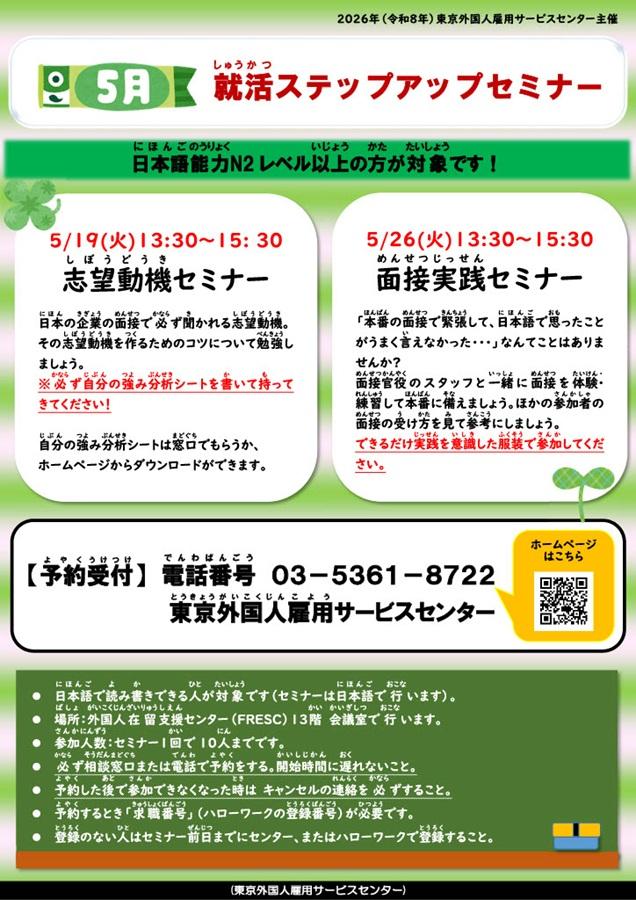 5月就活ステップアップセミナー(東京外国人雇用サービスセンター)
