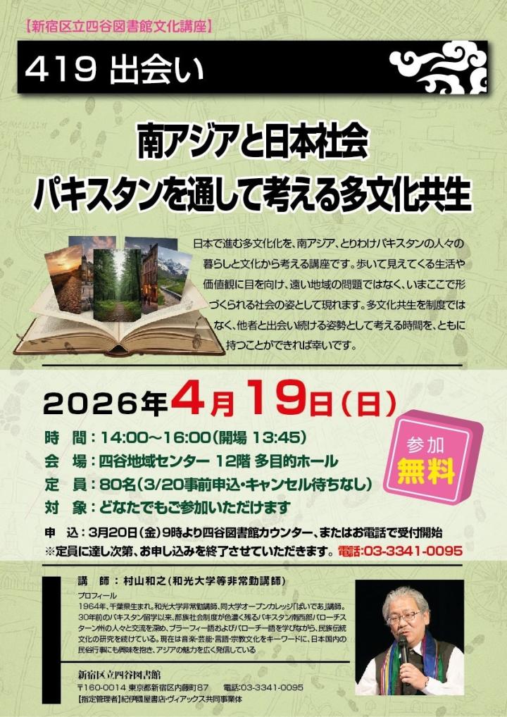 【4月 19日(日曜日)】四谷図書館文化講座「出会い」「南アジアと日本社会 パキスタンを通して考える多文化共生」