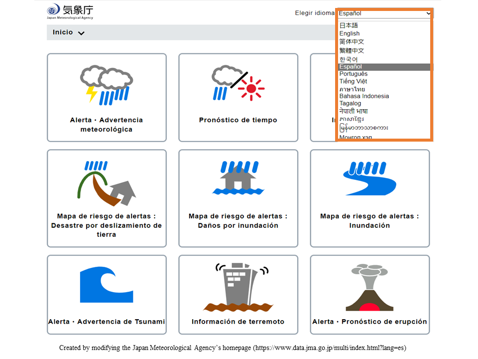 ■Sitio web de la Agencia Meteorológica de Japón (en 14 idiomas)https://www.data.jma.go.jp/multi/index.html?lang=jp(japonés)
