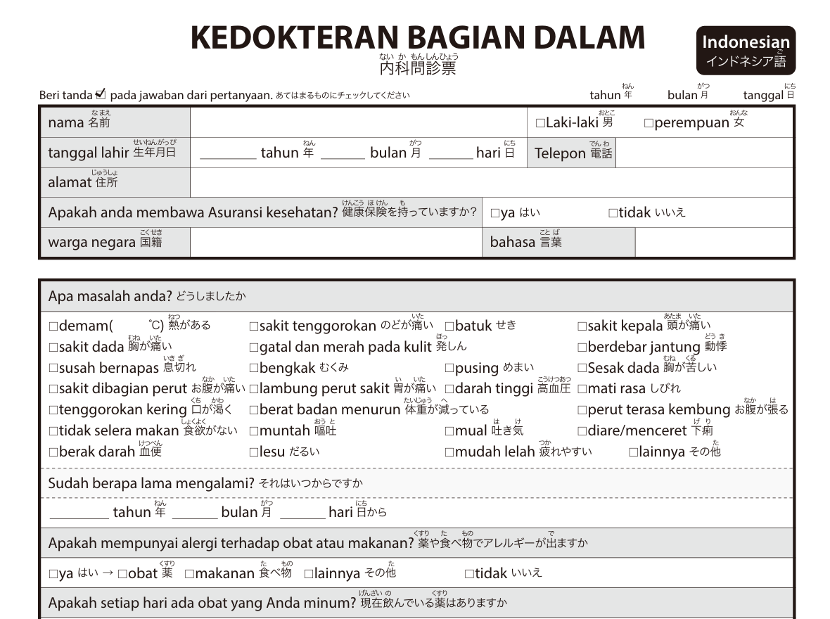 ■ Kuesioner Medis Multibahasa (NPO International Exchange Hearty Konandai, Kanagawa International Foundation)