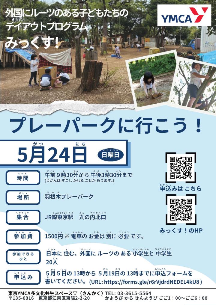 Event 2026.04.20“Mikkusu!” Day-out program for Children with International Backgrounds – Let’s Go to Hanegi Play Park (May 24, Sun.)