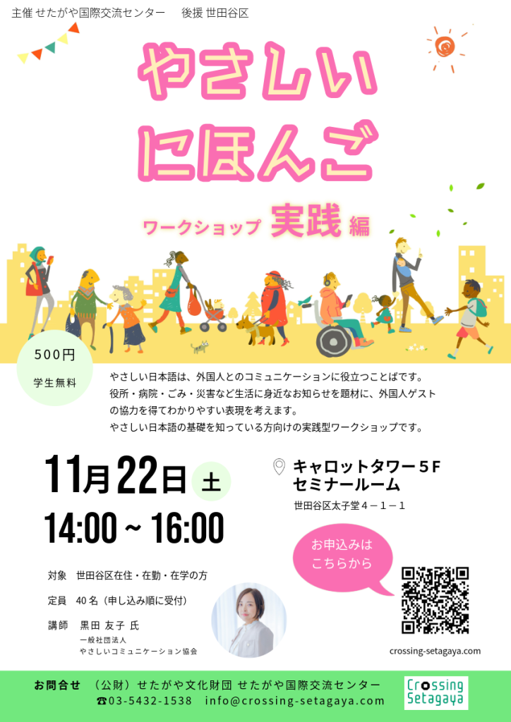 【世田谷区】やさしい日本語ワークショップ実践編(11月 22日開催)