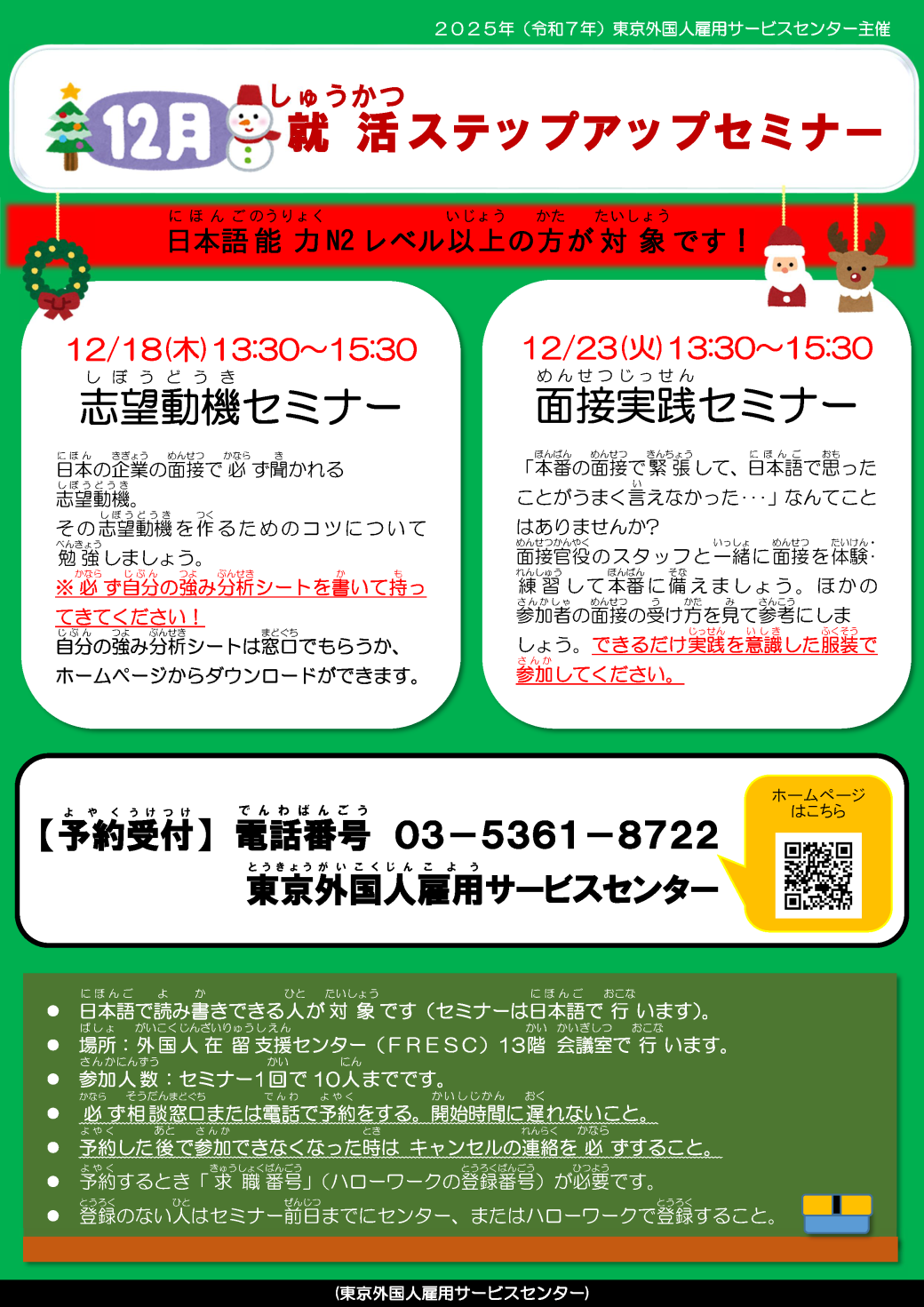 12月就活ステップアップセミナー(東京外国人雇用サービスセンター)