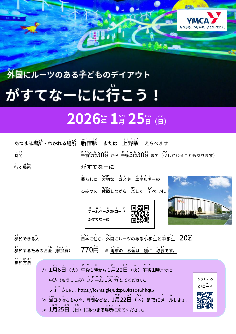 【参加者募集】外国にルーツのある子どもたちのプログラム「みっくす!」1/25(日)「がすてなーに」に行こう!