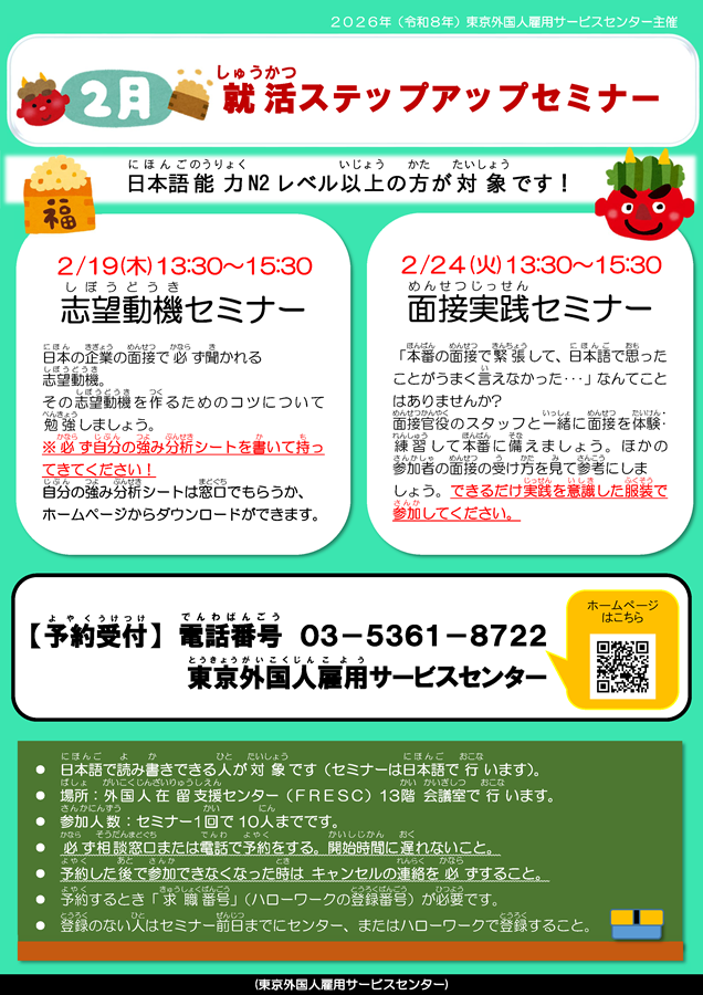 2月就活ステップアップセミナー(東京外国人雇用サービスセンター)