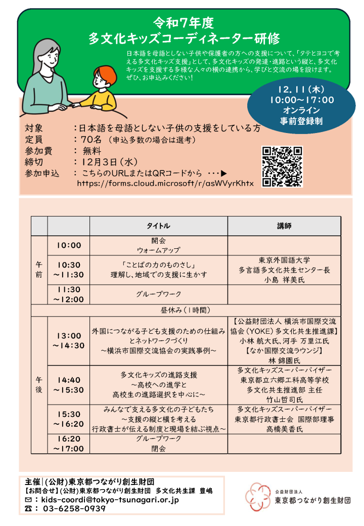【参加者募集】12/11「令和7年度 多文化キッズコーディネーター研修」