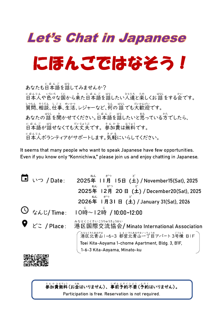 【2025年10月18日 土曜日】港区で 外国人のための 相談会が あります。