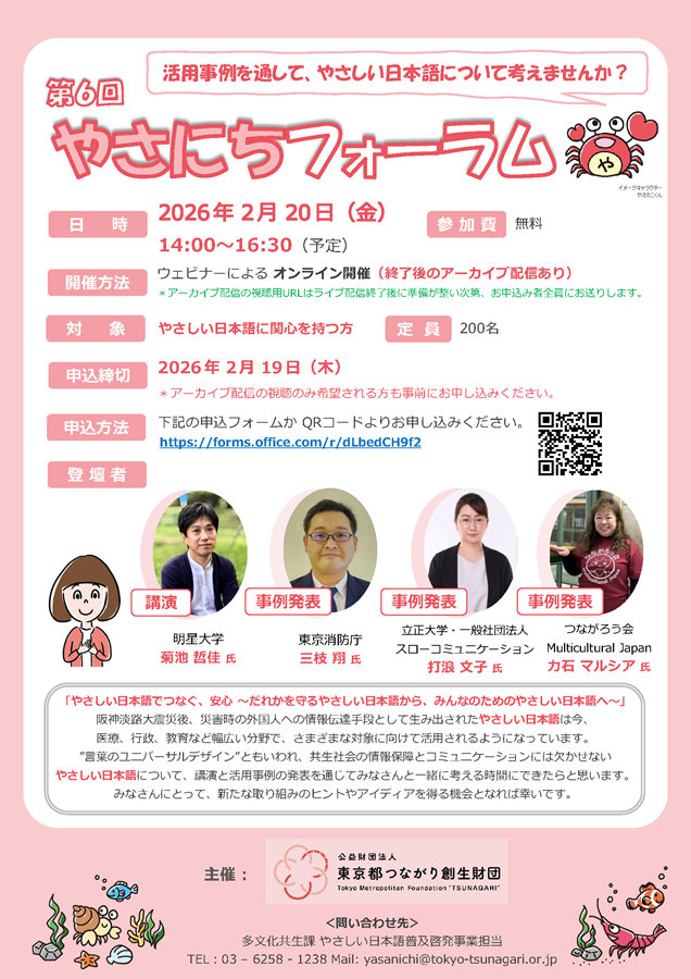 【2月20日(金曜日)開催】第6回「やさにちフォーラム」参加者募集!(オンライン開催・後日視聴可能)